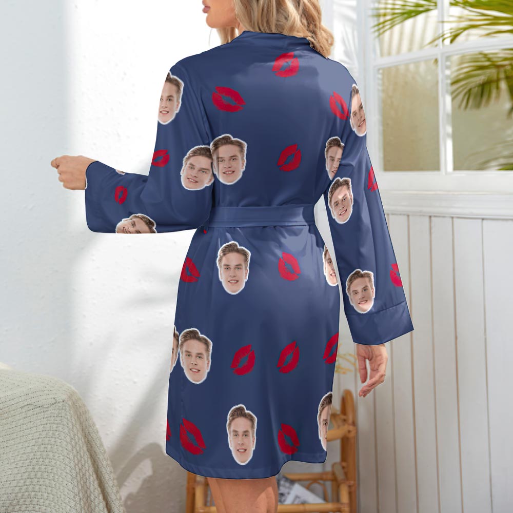 Custom Face Lip Print Long Sleeve Nightgown - Kiss