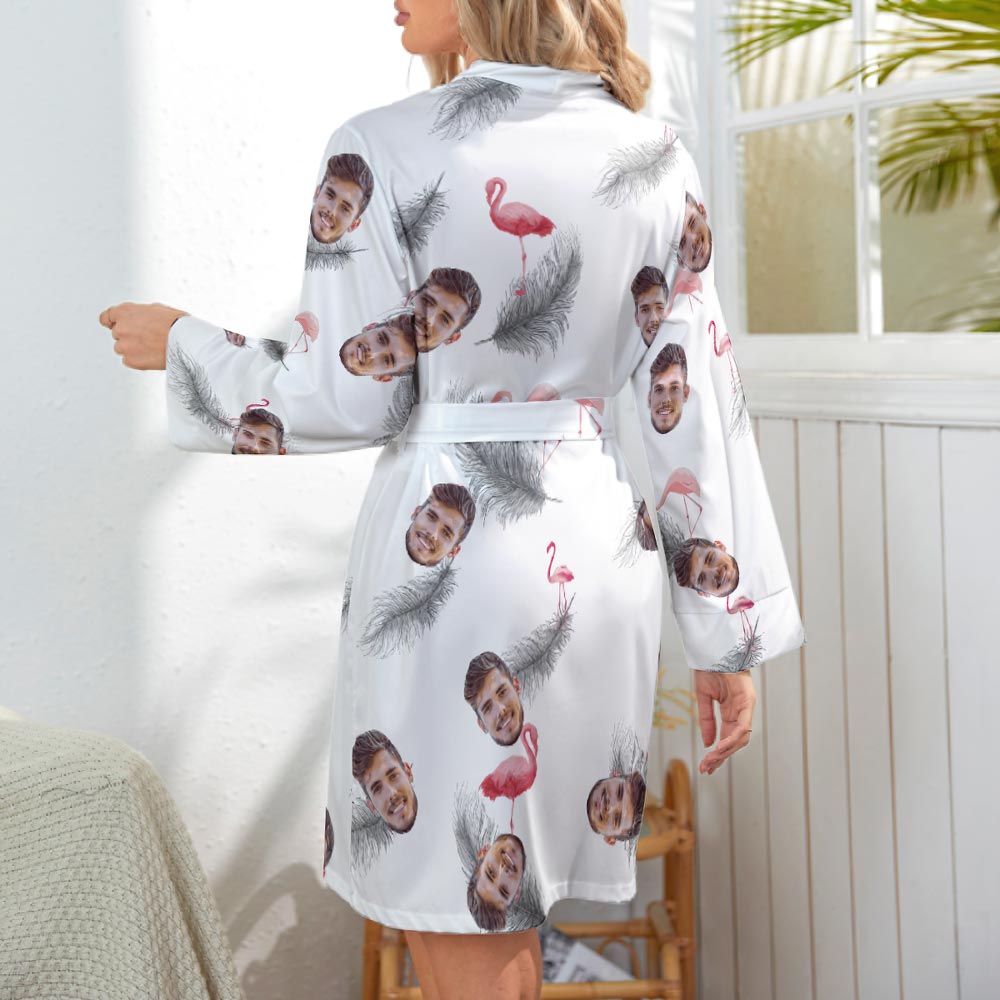 Custom Face Long Sleeved Nightgown Flamingo Flowers And Leaves