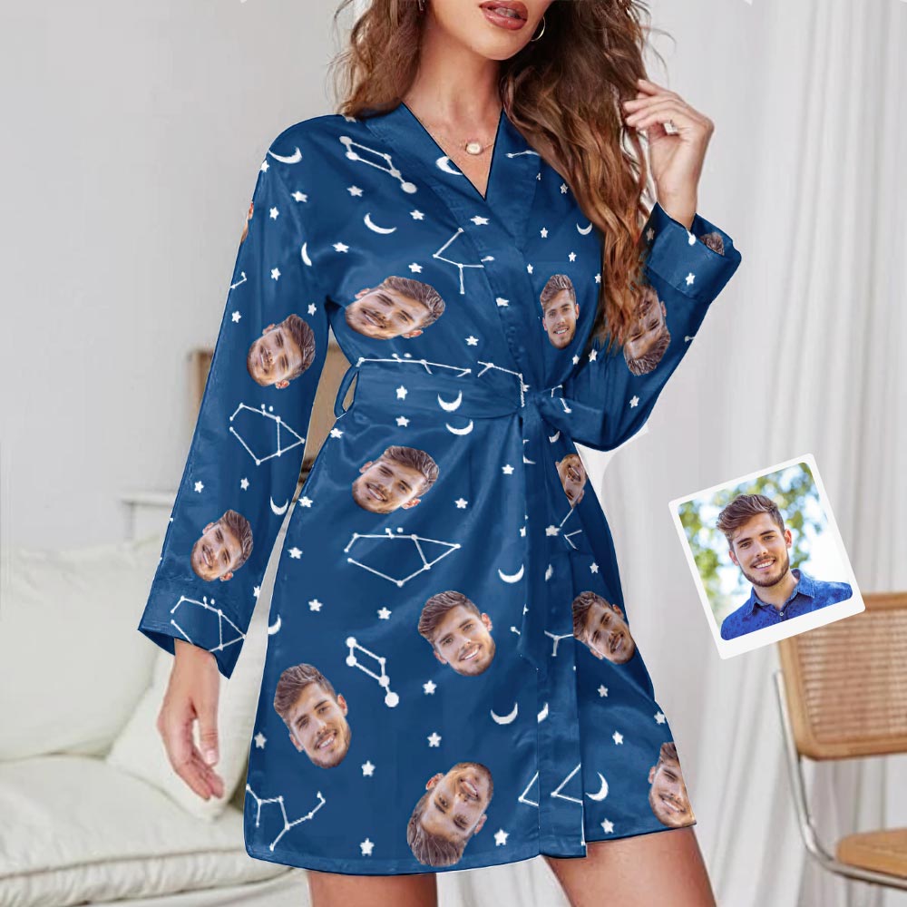 Custom Face Starry Sky Long Sleeved Nightgown