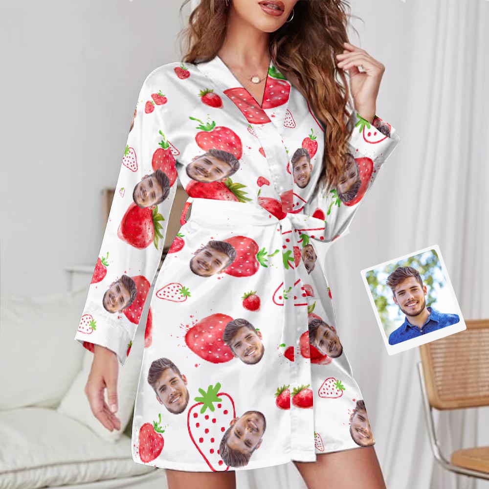 Custom Face Strawberry Long Sleeved Nightgown