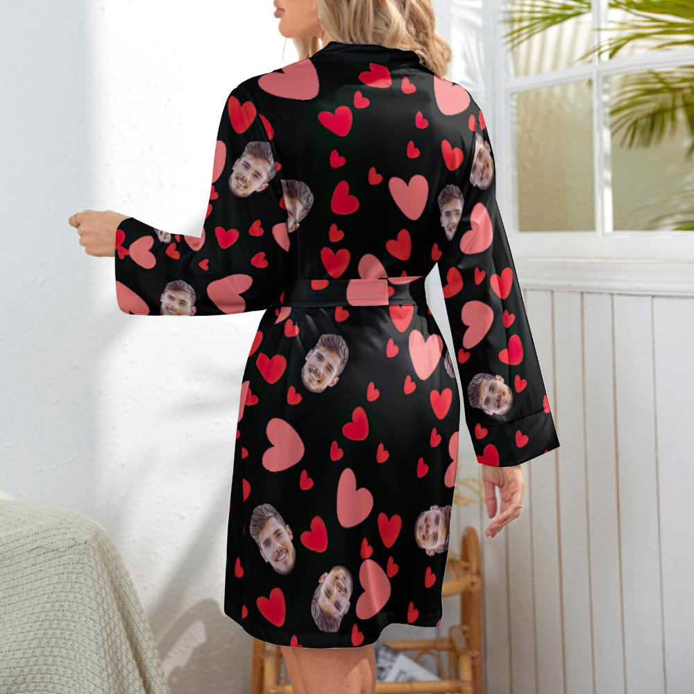 Custom Face Red Heart Printed Long Sleeved Nightgown Valentine's Day Gift