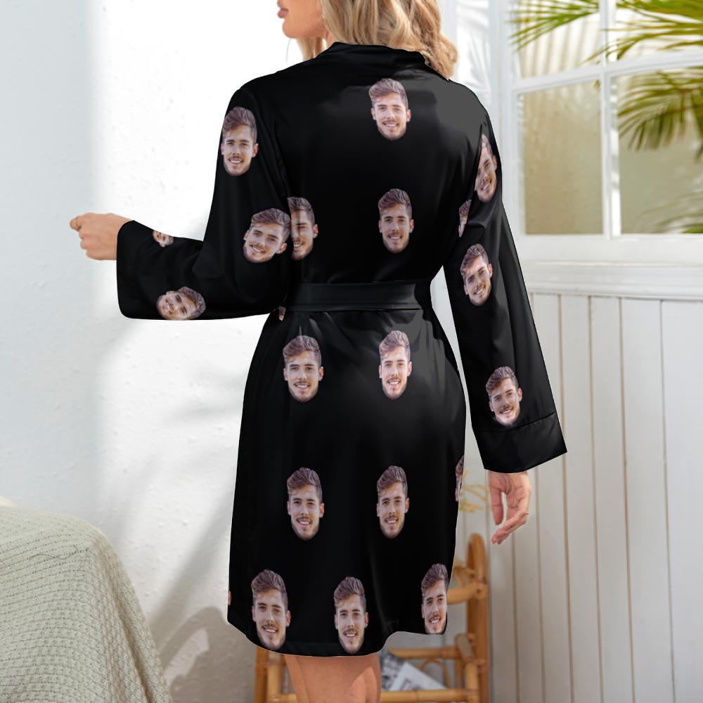 Custom Face Solid Color Long Sleeved Nightgown Valentine's Day Gift