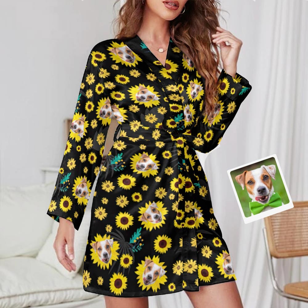 Custom Face Sunflower Long Sleeved Nightgown Valentine's Day Gift