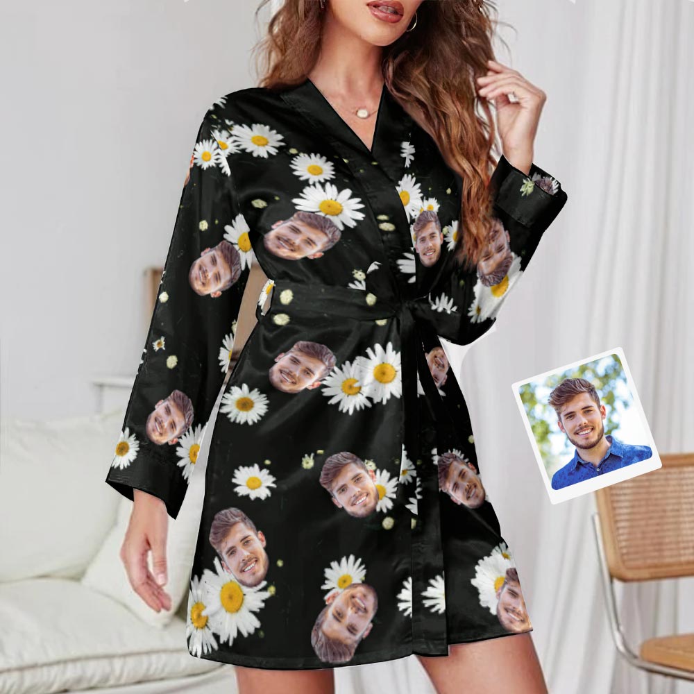 Custom Face Daisy Long Sleeved Nightgown Valentine's Day Gift
