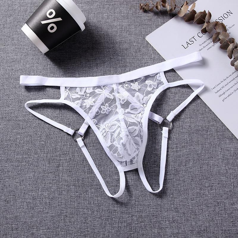3pcs Men's Sexy Thongs with Metal Rings See Through Low Rise One Size Underwear