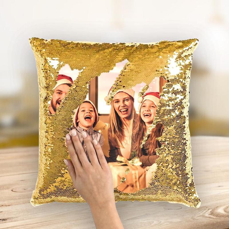 Mother's Day Gift Custom Love Couple Photo Magic Sequins Pillow Multicolor Shiny 15.75*15.75