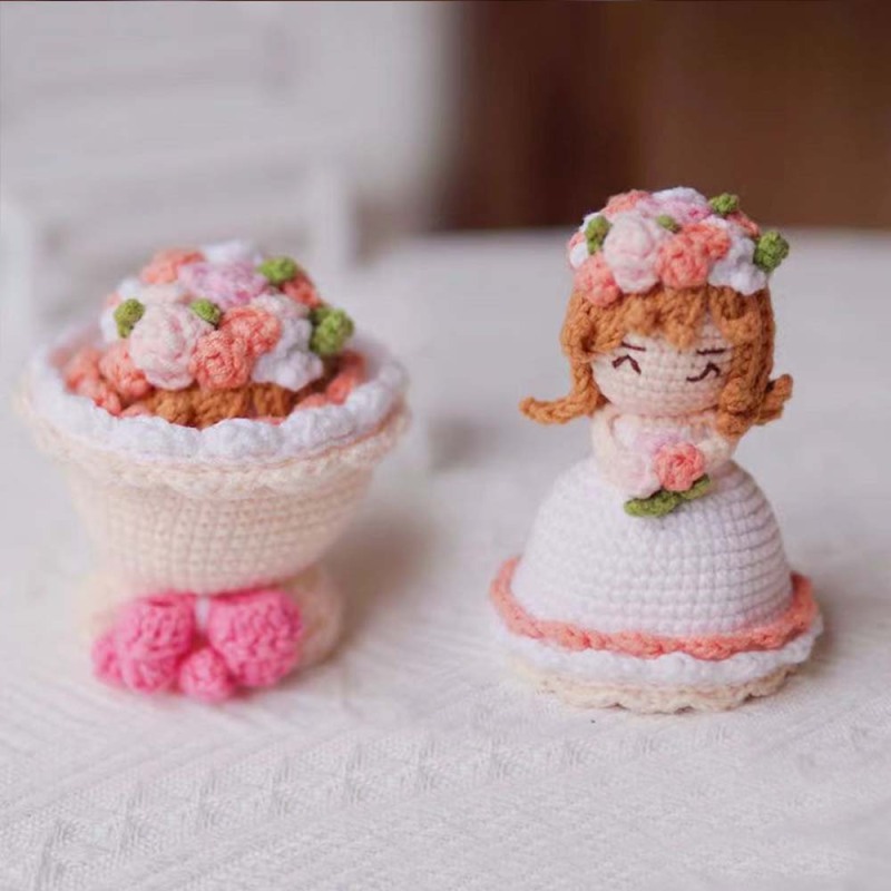 Crochet Doll Crossdressing Bride Flips Wedding Dress Bouquet