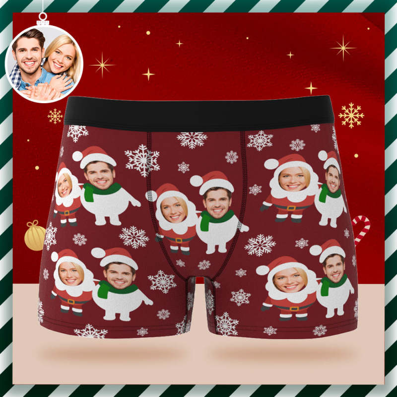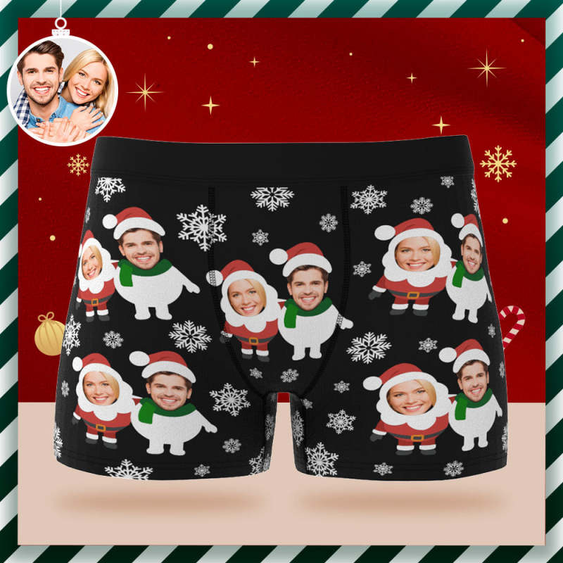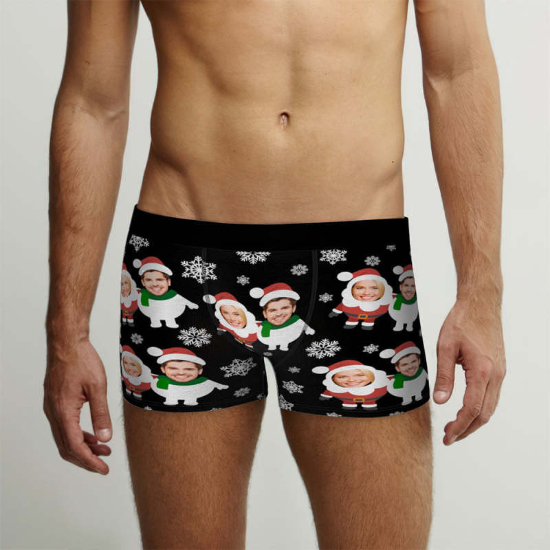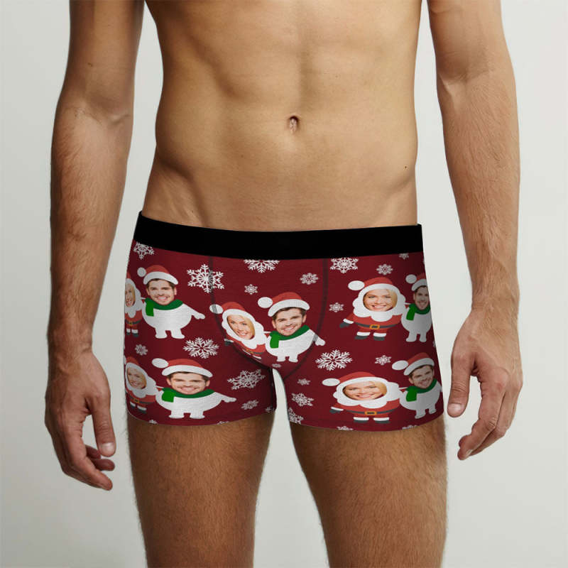 Custom Face Men's Boxers Briefs Personalized Men's Christmas Shorts With Photo Santa and Snowman