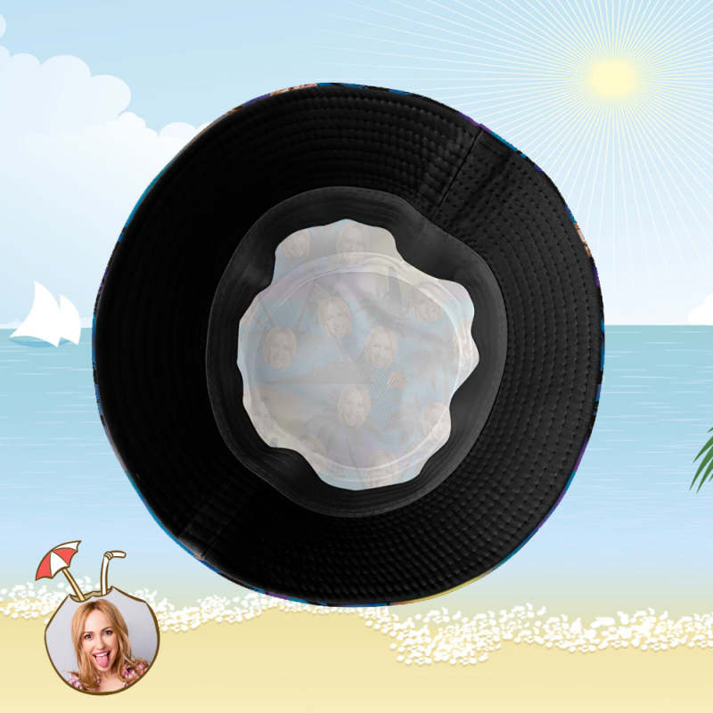 Custom Bucket Hat Personalized Face All Over Print Tropical Flower Print Hawaiian Fisherman Hat - Seaside at Dusk