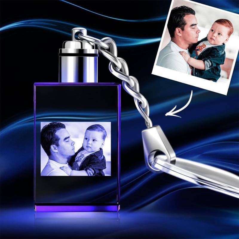 Custom Crystal Rectangle Photo Key Chain Fathers Day Gifts