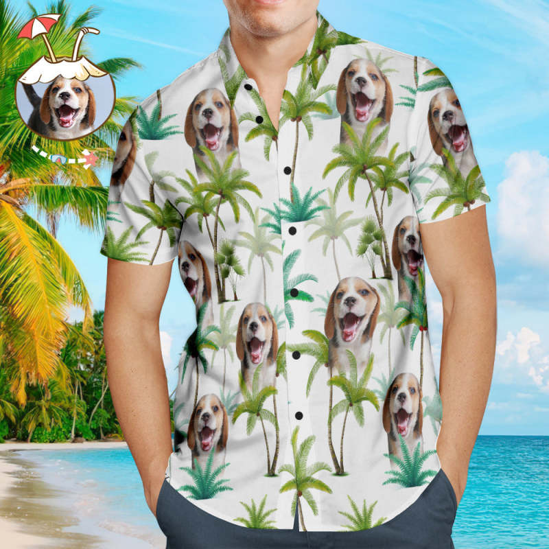 Custom Dag Face Men's Hawaiian Shirts with Coconut Tree for Pet Lover