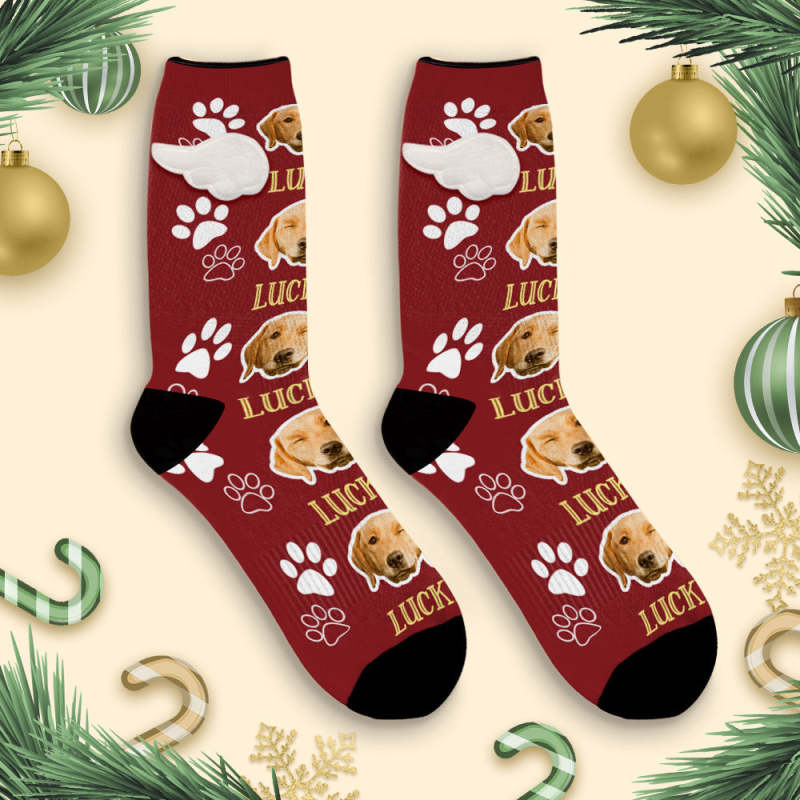 Custom Dog Face Socks 3D Magnetic Wing Socks Christmas Gifts
