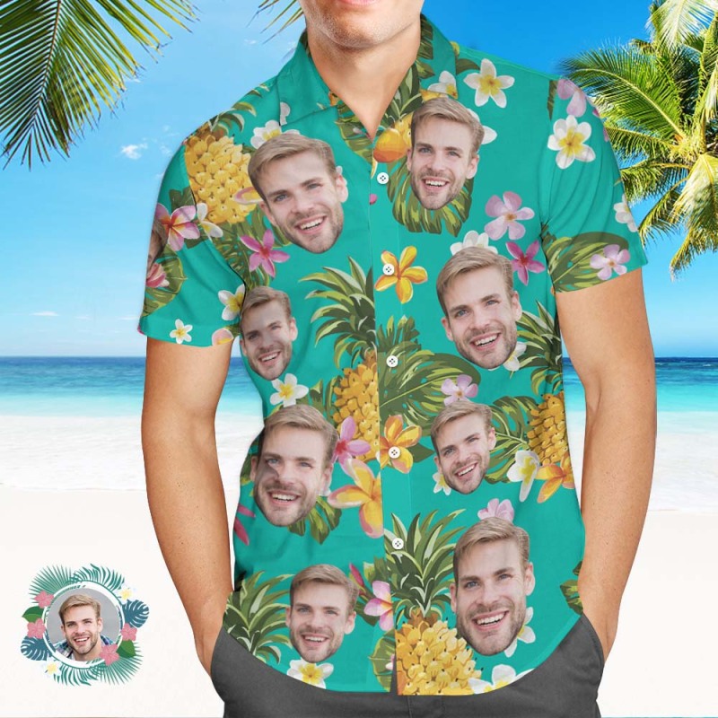 Custom Face All Over Print Hawaiian Shirt Pineapples Shirts Gift for Him
