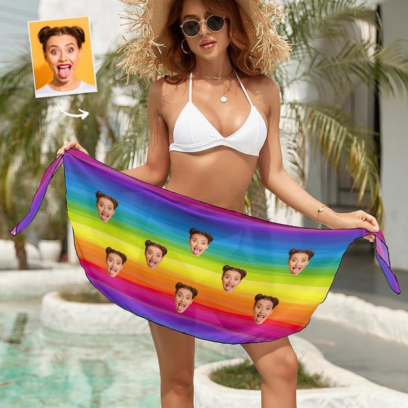 Custom Face Beach Wrap Women Short Sarongs - Rainbow