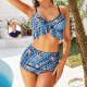 Custom Face Bikini Set Blue Purple Diagonal Personalization Face Swimsuit