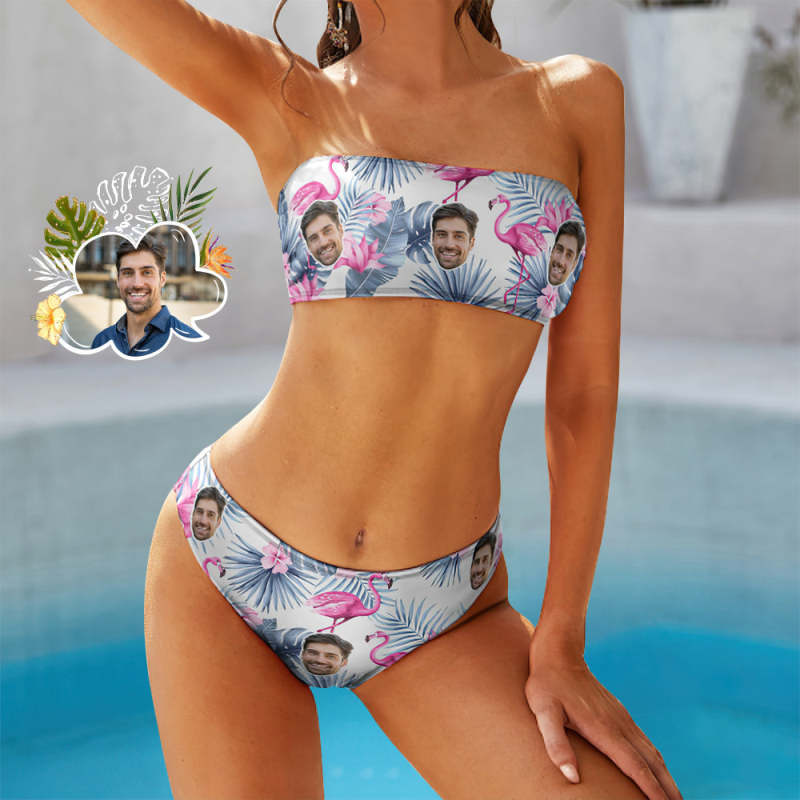 Custom Face Bikini swimming costume Bandeaukini Gift For Her - FLAMINGO