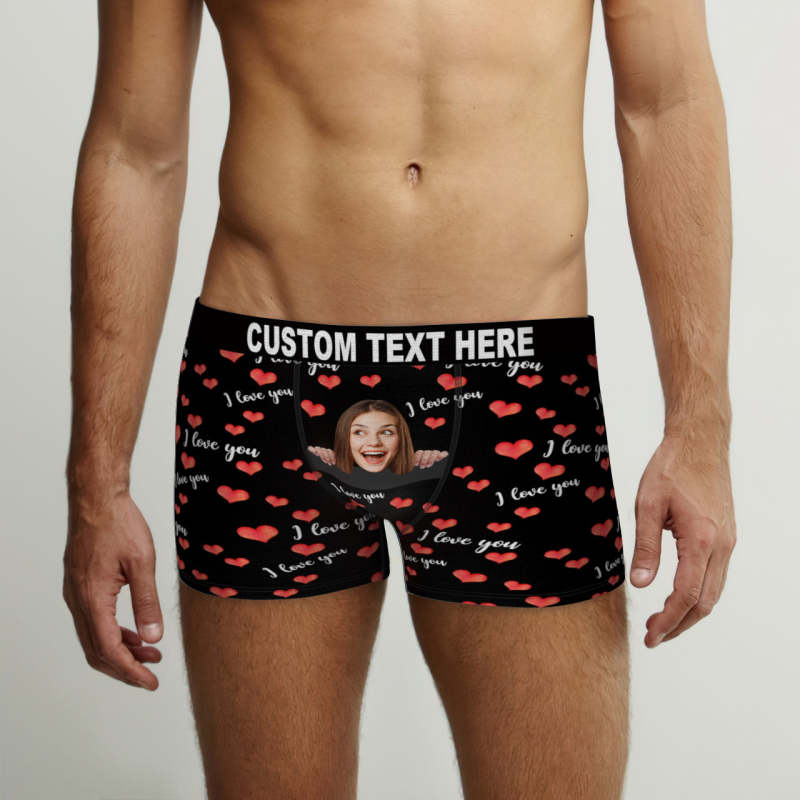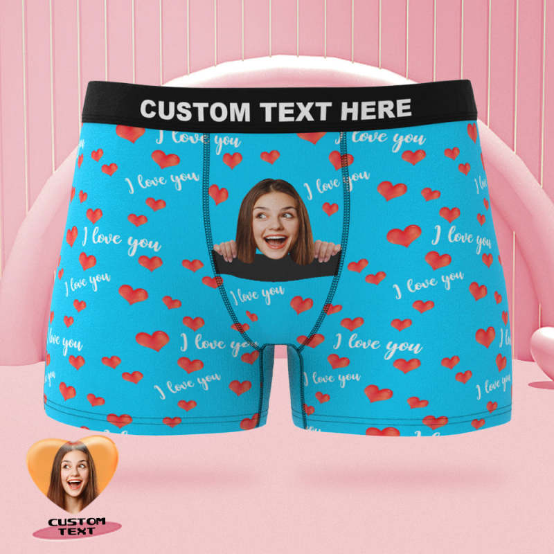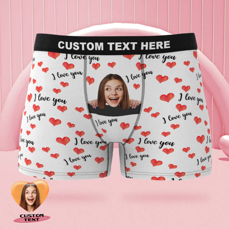 Custom Face Boxer Briefs I Love You with All My Heart Personalized Naughty Valentine's Day Gift for Him