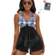 Custom Face Boyfriend Women's Strappy Neck Dress Swimsuit - Blue Grid