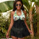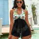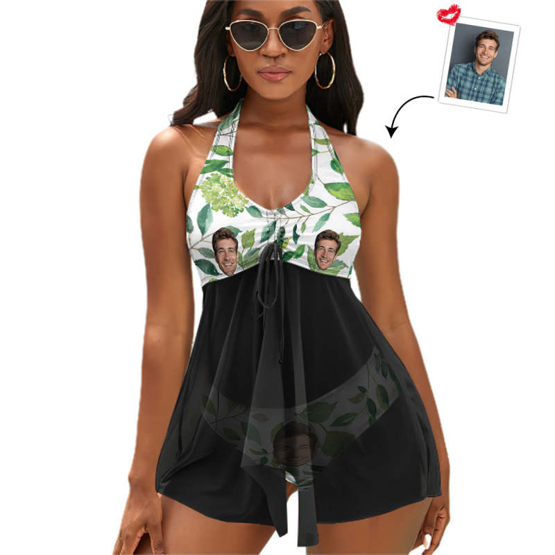 Custom Face Boyfriend Women's Strappy Neck Dress Swimsuit - Green Leaves