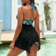 Custom Face Boyfriend Women's Strappy Neck Dress Swimsuit - Leaf