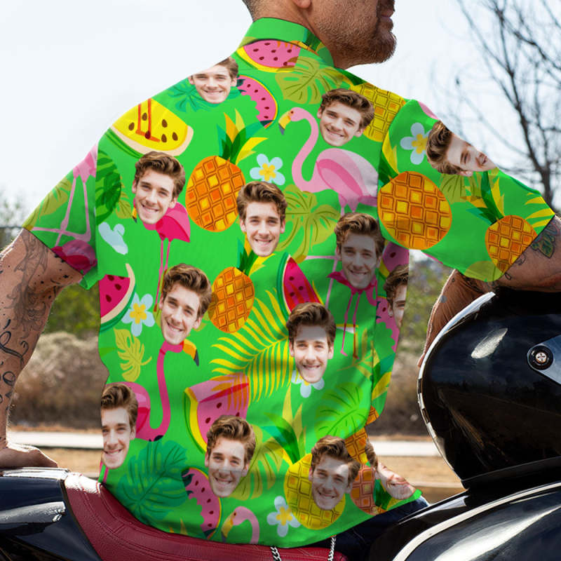Custom Face Hawaiian Shirt Flamingo All Over Print Personalized Shirt Cherry Parrot with Your Photo