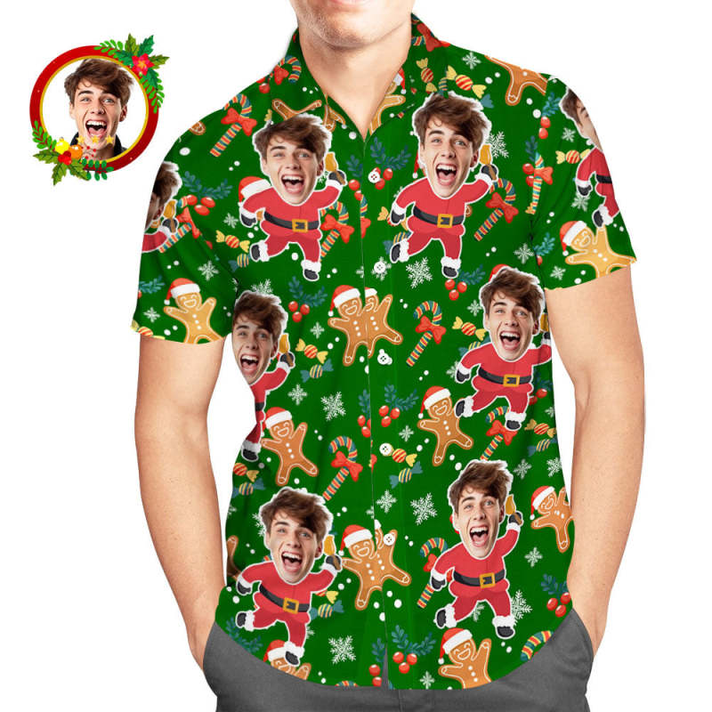 Custom Face Hawaiian Shirt Santa Gingerbread Man Men's Christmas Shirts
