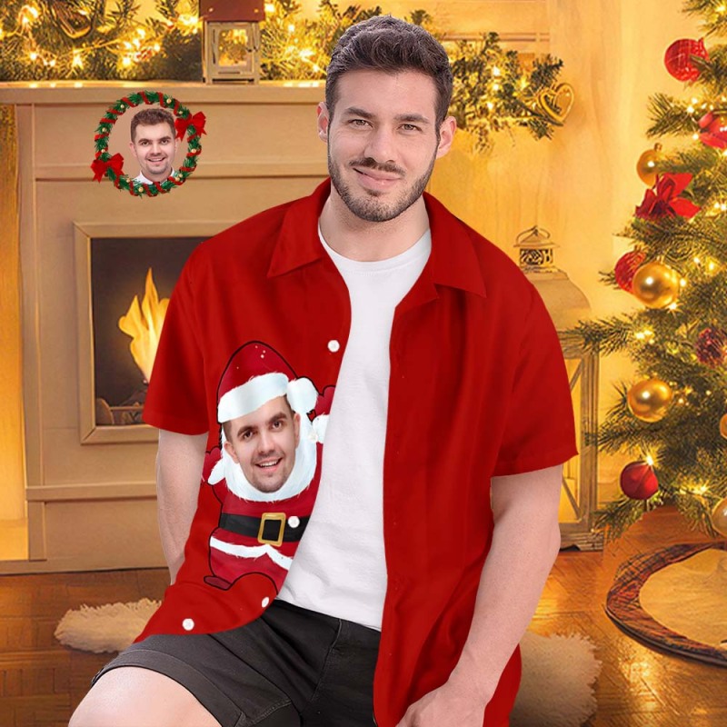 Custom Face Hawaiian Shirts Personalized Photo Gift Men's Christmas Shirts Santa Claus Red Shirt