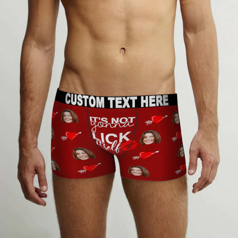 Custom Face Lick Itself Boxer Briefs Personalized Naughty Valentine's Day Gift for Him