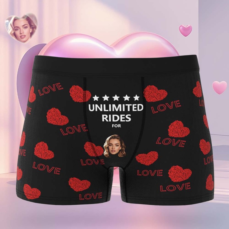 Custom Face Men's Boxer Briefs Personalized Boxers Unlimited Rides Underwear Valentine Gift for Husband