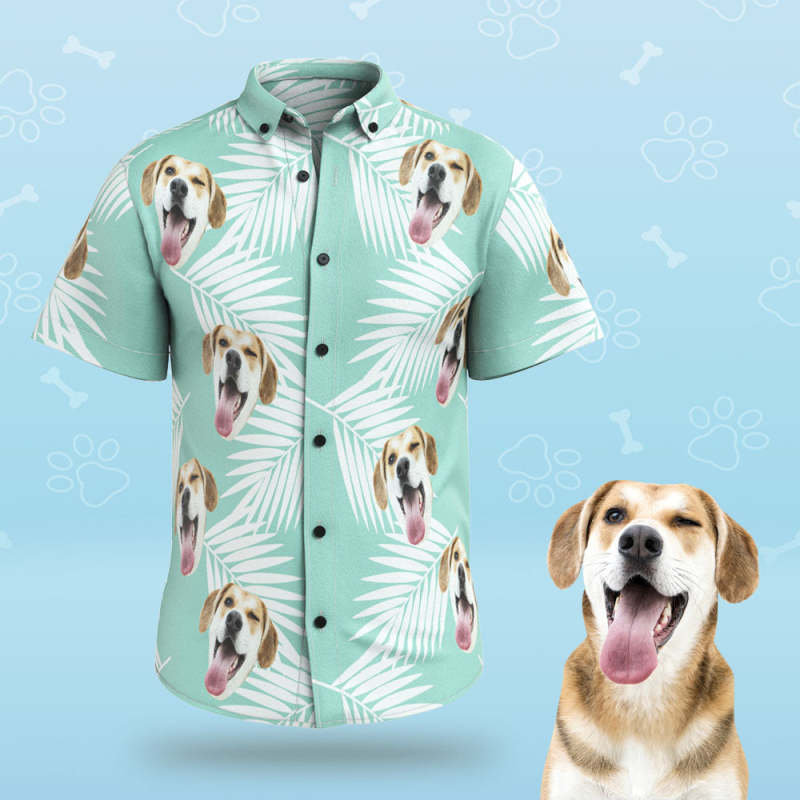 Custom Face Men Hawaiian Shirts Personalized Cute Dog Face for Pet Lover - Blue