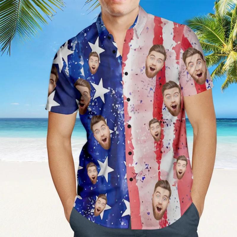 Custom Face Men's Patriotic Hawaiian Shirt Casual Breathable Short Sleeve Hawaiian Shirt