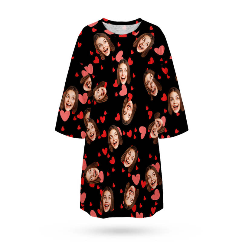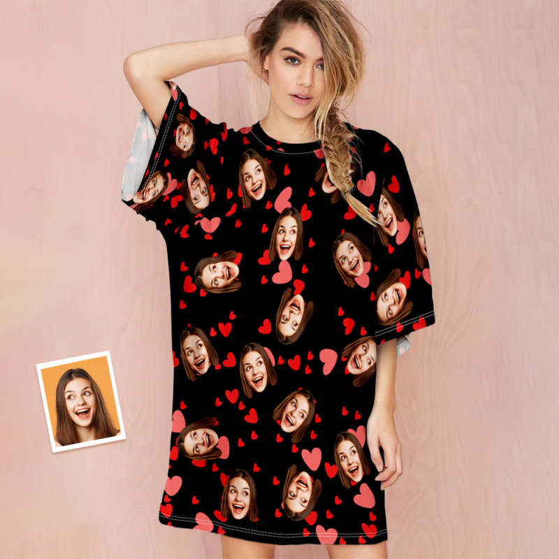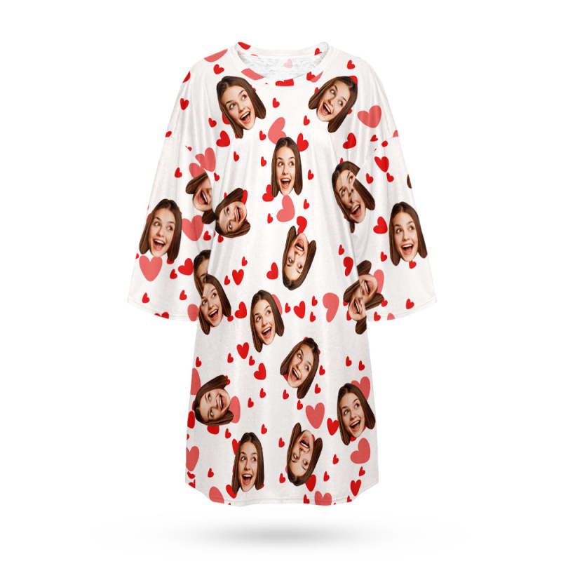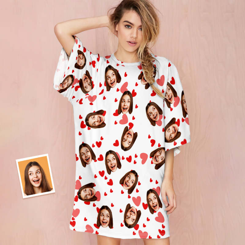 Custom Face Nightdress Personalized Photo Women's Oversized Nightshirt Red Heart Gifts For Her