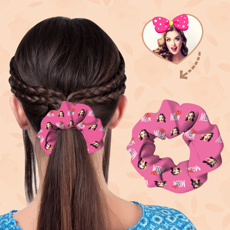 (3pcs)Custom Face On Hair Scrunchie Personalized Ponytail Holders Tiaras - MOM - Pink