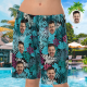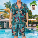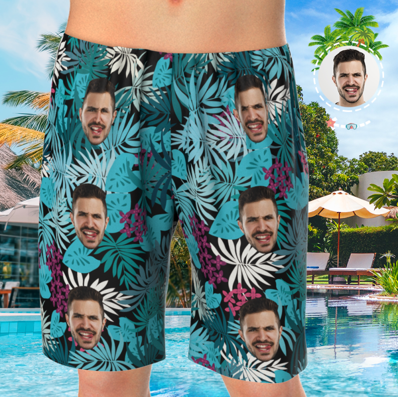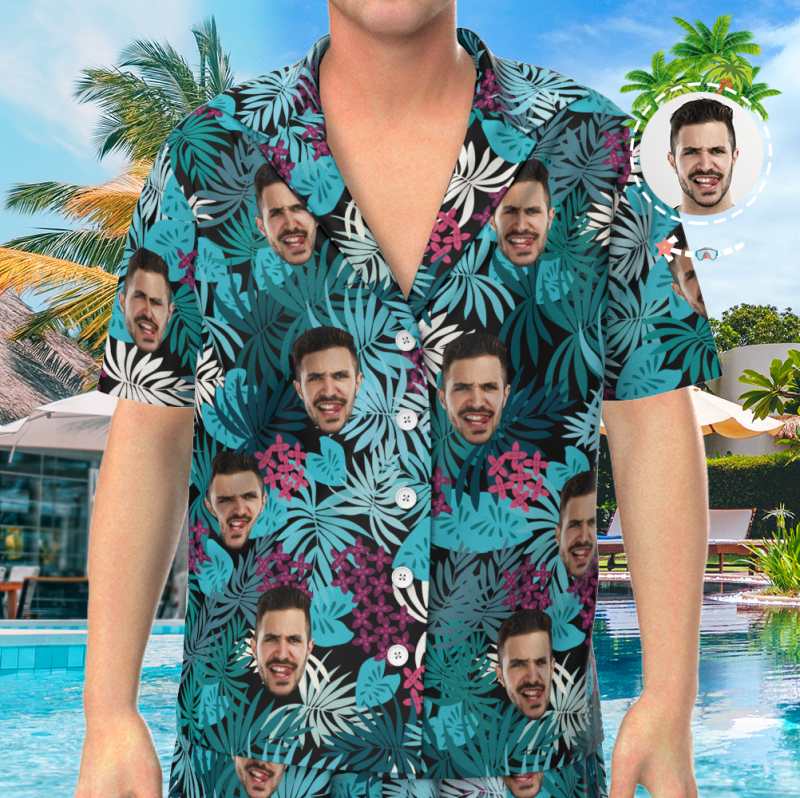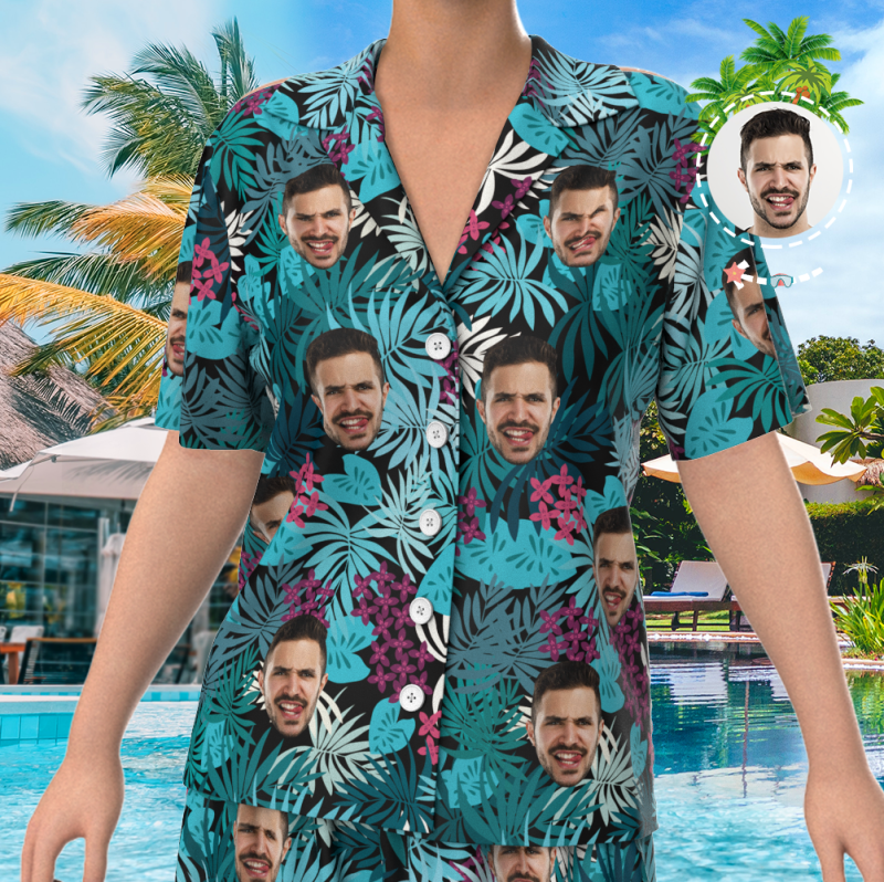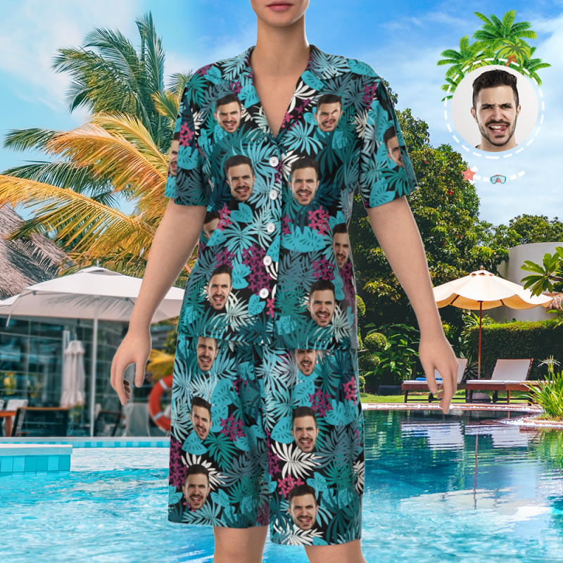 Custom Face On Pajamas Set, Short Sleeve Sleepwear, Button-Down Nightwear - Courful Leaves