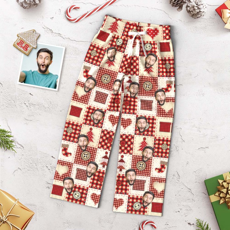 Custom Face Pants Ladie's Loose Wide-leg Pajama Pants Christmas Red Plaid Pajamas Merry Christmas