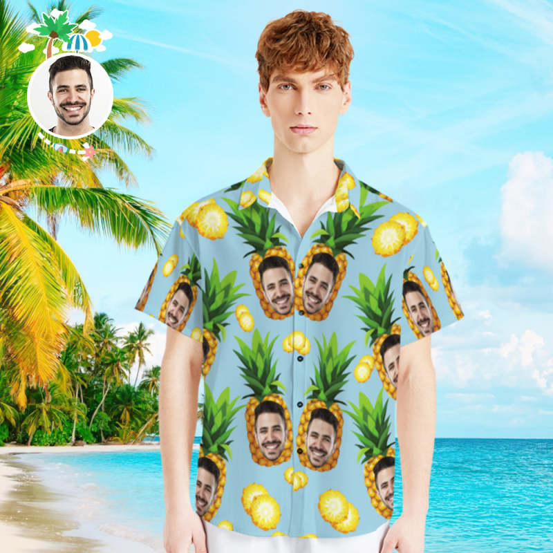 Custom Face Shirt Hawaiian Shirts and Dress Couple Outfit for Lover - Big Pineapple