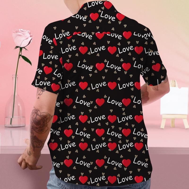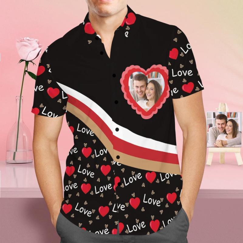 Custom Face Shirt Personalized Photo Black Hawaiian Shirt Valentine's Day Gift - Love