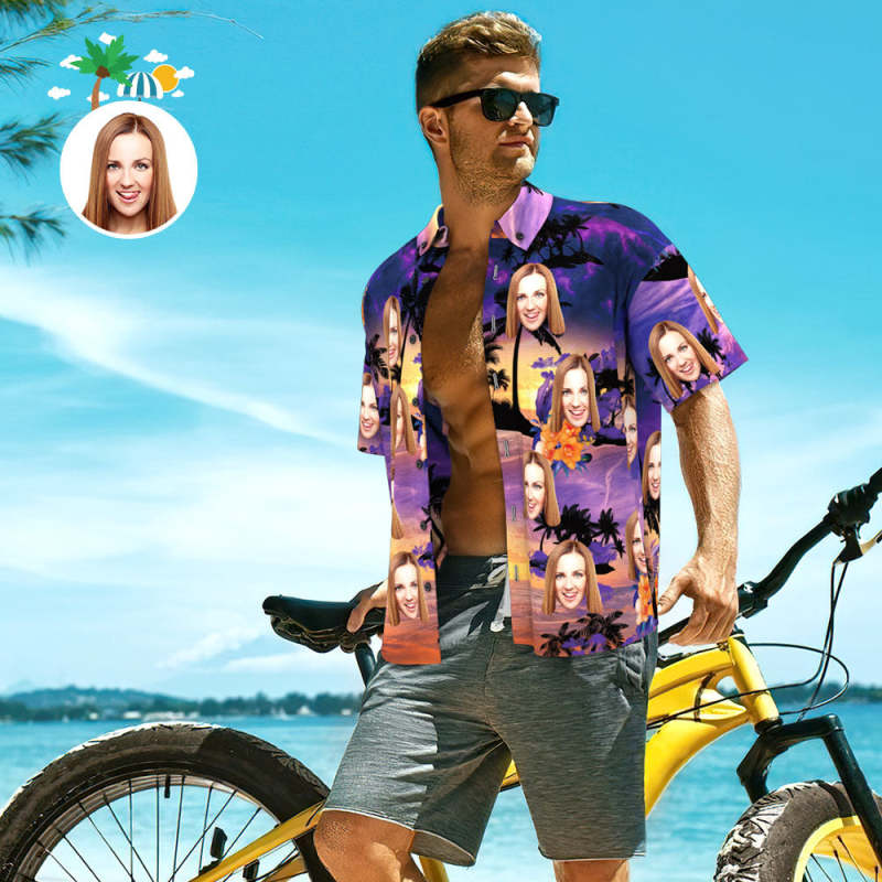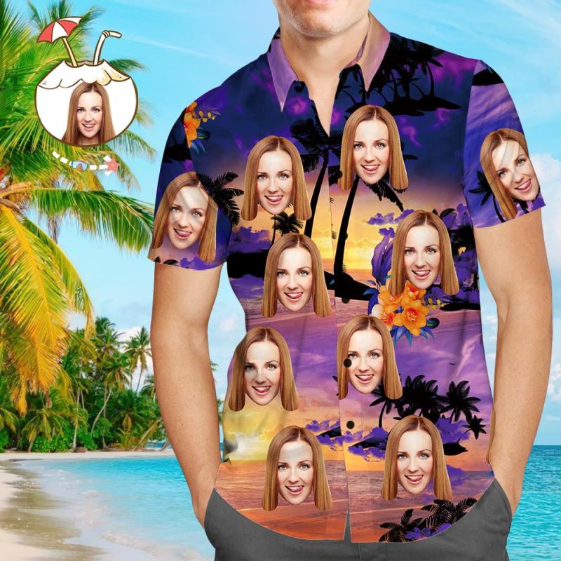 Custom Face Shirt Personalized Photo Men's Hawaiian Shirt Men's Hawaiian Shirt Purple Sunset