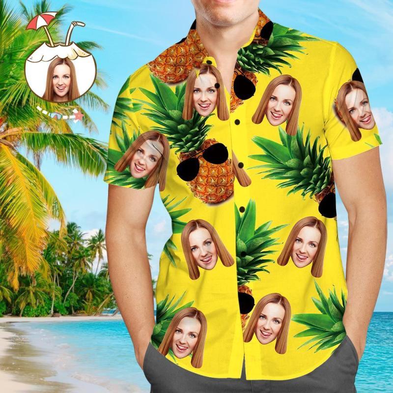 Custom Face Shirt Personalized Photo Men's Hawaiian Shirt Pineapple