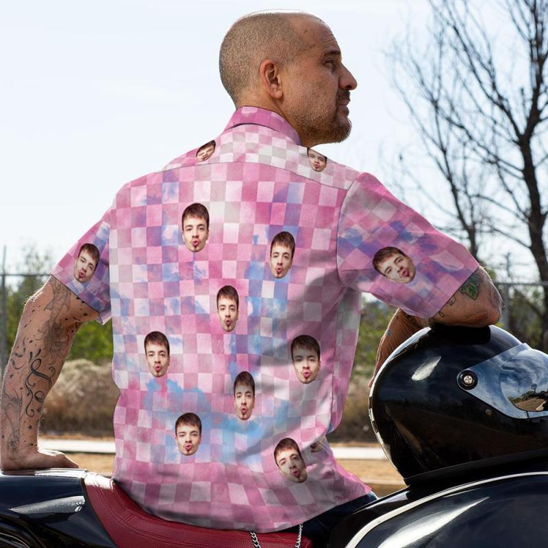 Custom Face Shirt Personalized Photo Men's Hawaiian Shirt Tie-Dye Checkered Design Aloha Beach Shirt