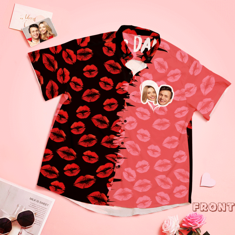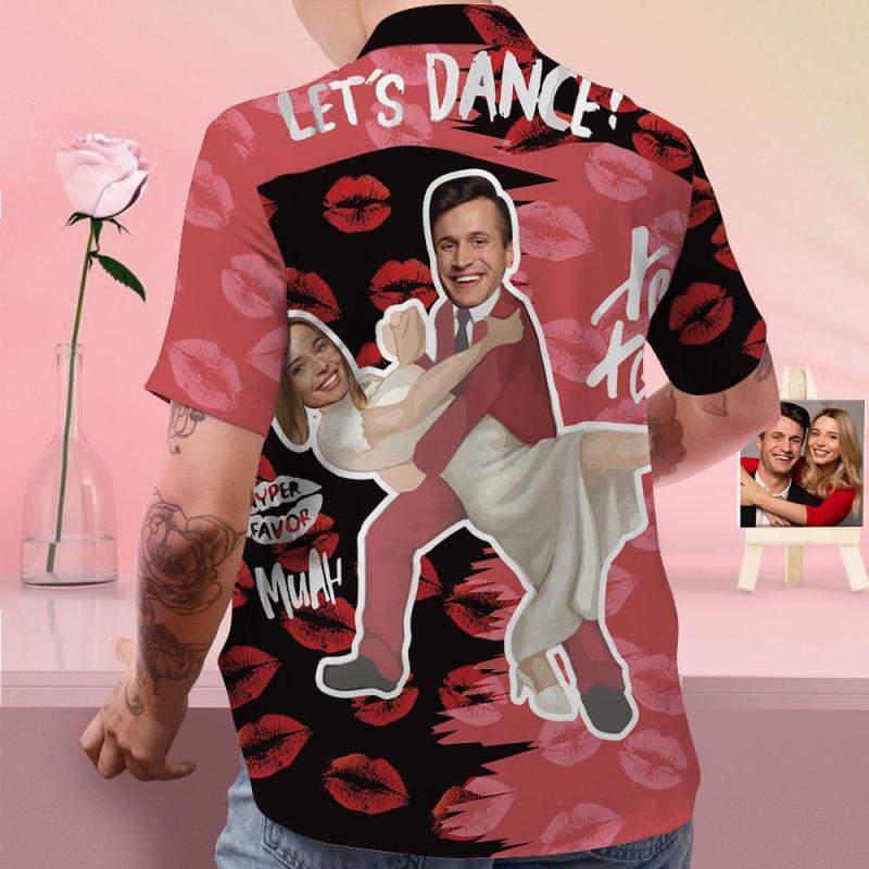 Custom Face Shirt Personalized Photo Men's Hawaiian Shirt Valentine's Day Gift Red Lips- Let's Dance