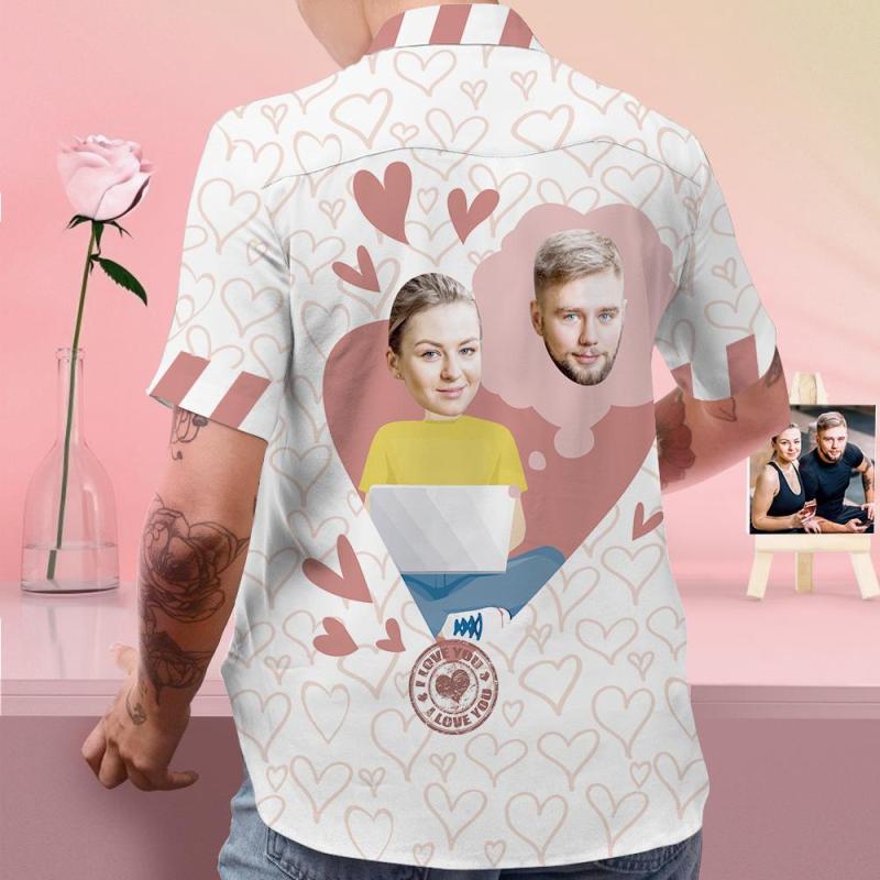 Custom Face Shirt Personalized Photo Men's Pink Hawaiian Shirt Valentine's Day Gift - Miss You at Work