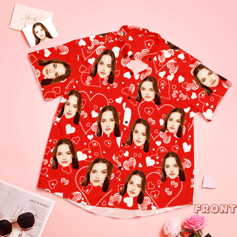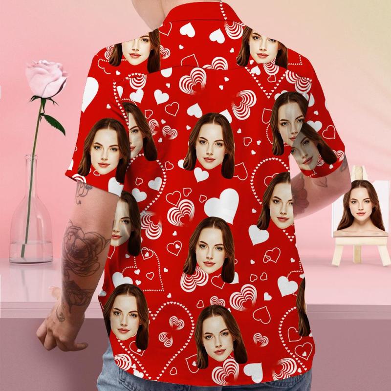 Custom Face Shirt Personalized Photo Red Hawaiian Shirt Valentine's Day Gift - Love