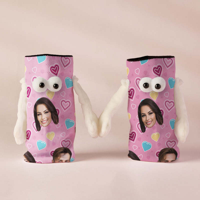 Custom Face Socks Funny Doll Mid Tube Pink Socks Magnetic Holding Hands Socks Valentine's Day Gifts