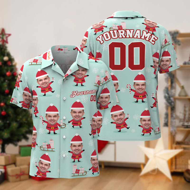 Custom Face Hawaiian Shirts Personalized Photo and Text Shirt Gift Men's Christmas Shirts Santa Claus and Gifts