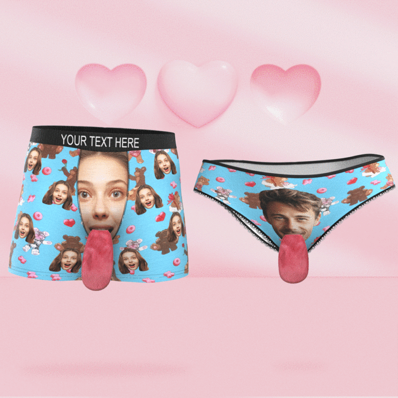 Custom Face Underwear Personalized Magnetic Tongue Underwear Love Bear Valentine's Gifts for Couple