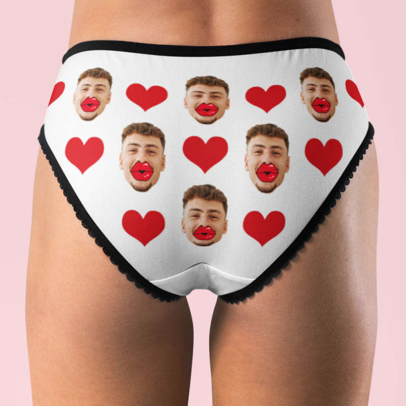 Custom Face Underwear Personalized Red Lips and Heart Underwear Valentine's Day Gift