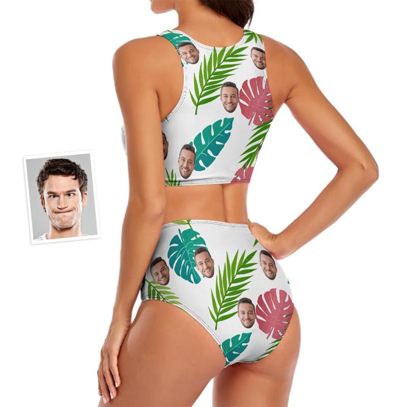 Custom Face Women's Leaves Two-piece Swimsuit Personalized Gifts for Her