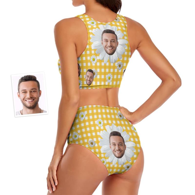 Custom Face Women's Little Daisy Series Plaid Two-piece Swimsuit