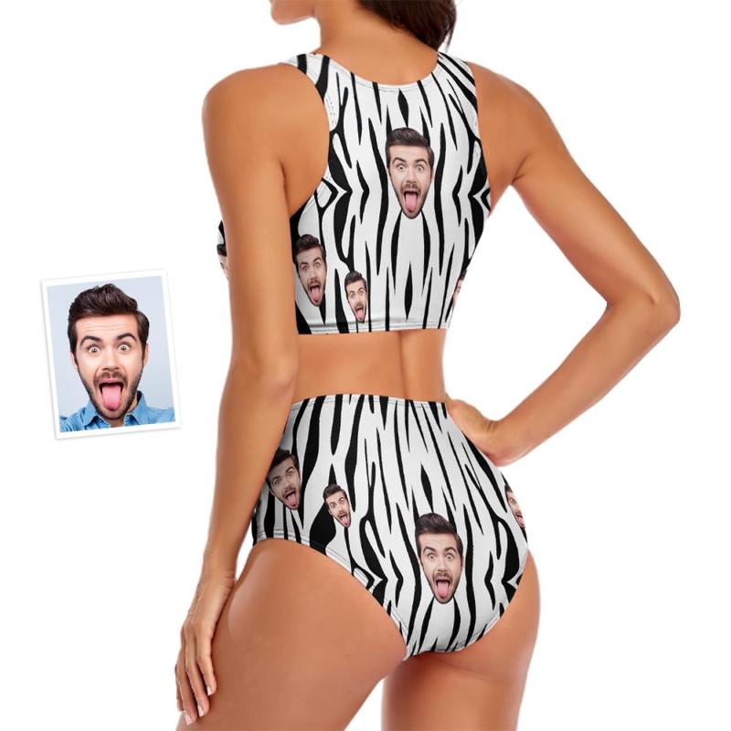Custom Face Women's Zebra Stripes Sexy Two-piece Swimsuit